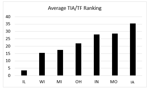 Illinois clearly ranks worst among its neighbors on this measure, as well.
